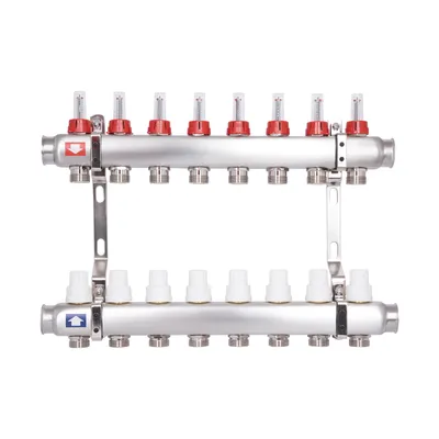Колектор Standart з нерж. сталі, з термостатичн. клапанами і витратомірами 1" х 8 (вих) SD0048 Thermo Alliance