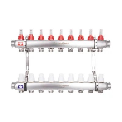 Колектор Standart з нерж. сталі, з термостатичн. клапанами і витратомірами 1" х 9 (вих) SD0049 Thermo Alliance