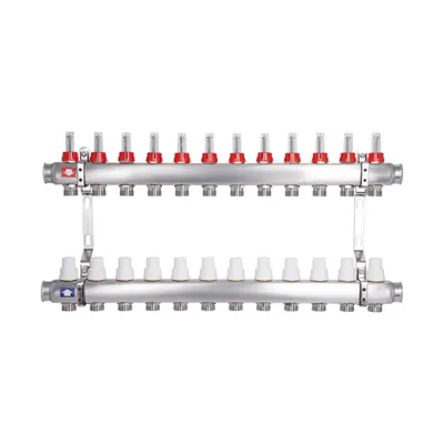 Колектор Standart з нерж. сталі, з термостатичн. клапанами і витратомірами 1" х 12 (вих) SD00412 Thermo Alliance
