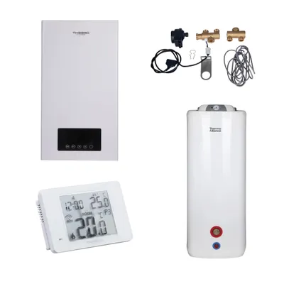 Комплексне рішення Thermo Alliance для котельні: електричний котел 12 кВт + комплект підключення бойлера + комбінований підлоговий водонагрівач 120 л