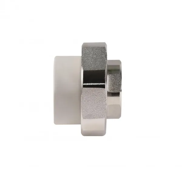 Американка PPR Thermo Alliance 50х1" 1/2 ВР зроблена з латуні та поліпропілену. У складі комбінованого виробу: два штуцери, гайка шестигранної форми й прокладка для герметизації. Різьба — півтора дюйма (внутрішня), розмір під поліфузне зварювання — 50 мм. Такий фітинг використовують для виконання роз'ємних з'єднань, з його допомогою легко під'єднати різноманітні компоненти інженерних комунікацій при спорудженні систем опалення, гарячого та холодного водопостачання.