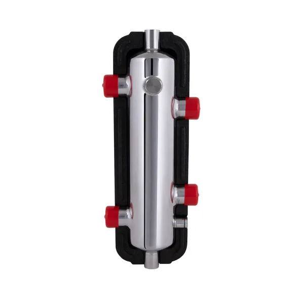Гідрострілка Thermo Alliance серії Forte 1" 50 кВт - пристрій, що використовується для поділу та ув'язки первинного (котлового) і вторинного контуру системи опалення. Основні патрубки підключення - із зовнішнім різьбленням розміром 1 дюйм. Виріб забезпечений двома патрубками для приєднання повітровідвідника та зливного крану. Встановлення гідравлічної стрілки подовжує термін служби котельного обладнання. У комплектацію входить теплоізоляційний кожух, який легко зняти та надіти знову після монтажу.