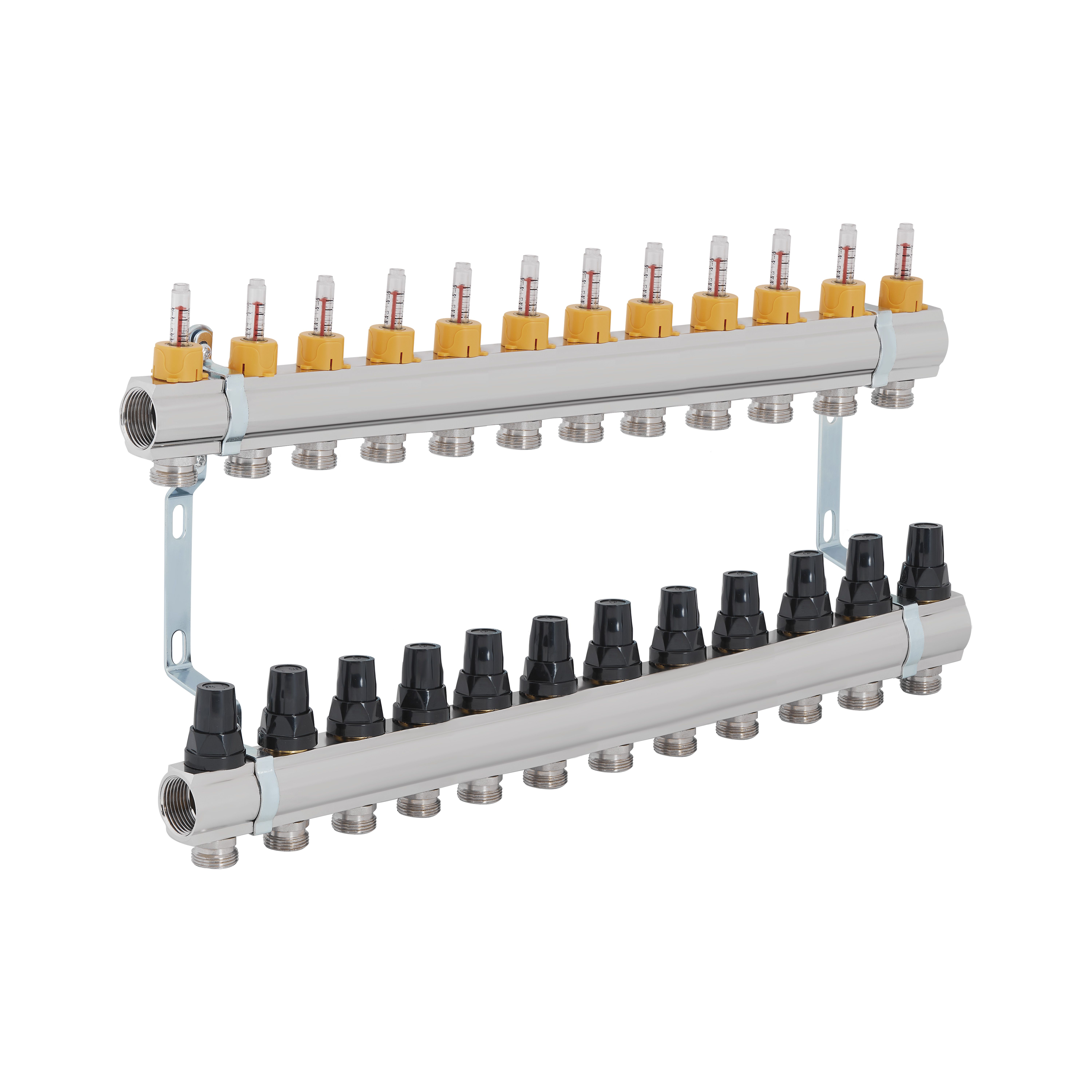Колектор Standart з нерж. сталі, з термостатичн. клапанами і витратомірами 1" х 12 (вих) SD00412 Thermo Alliance