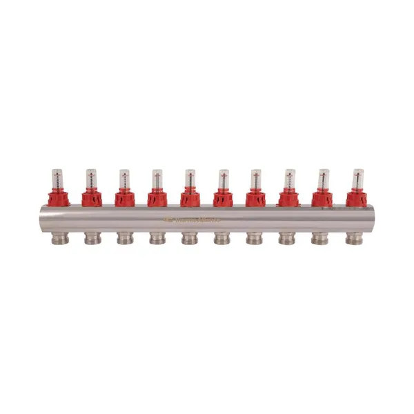 Колектор Standart з нерж. сталі, з термостатичн. клапанами і витратомірами 1" х 10 (вих) SD00410 Thermo Alliance