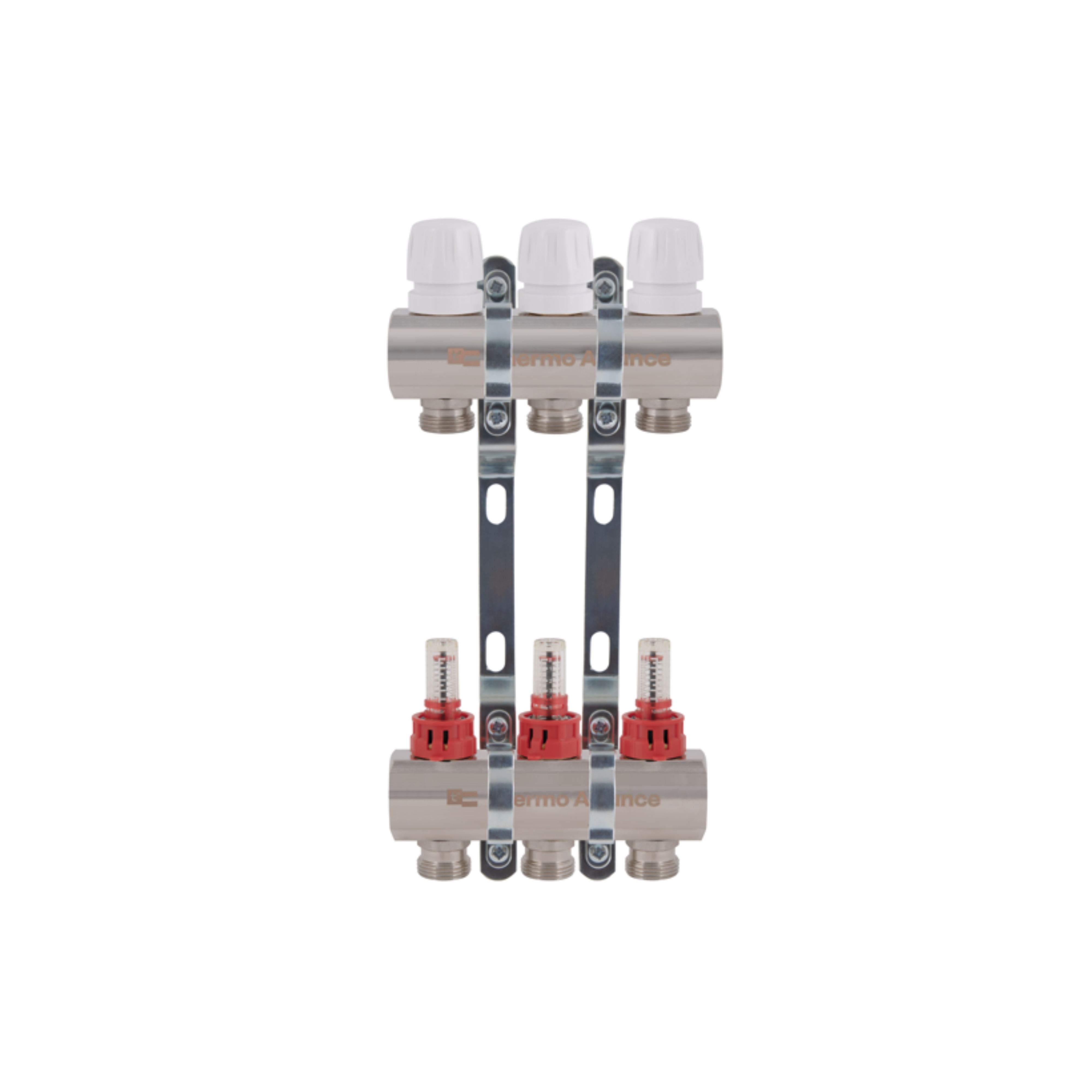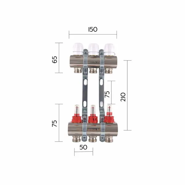 Колектор Standart з нерж. сталі, з термостатичн. клапанами і витратомірами 1" х 3 (вих) SD0043 Thermo Alliance