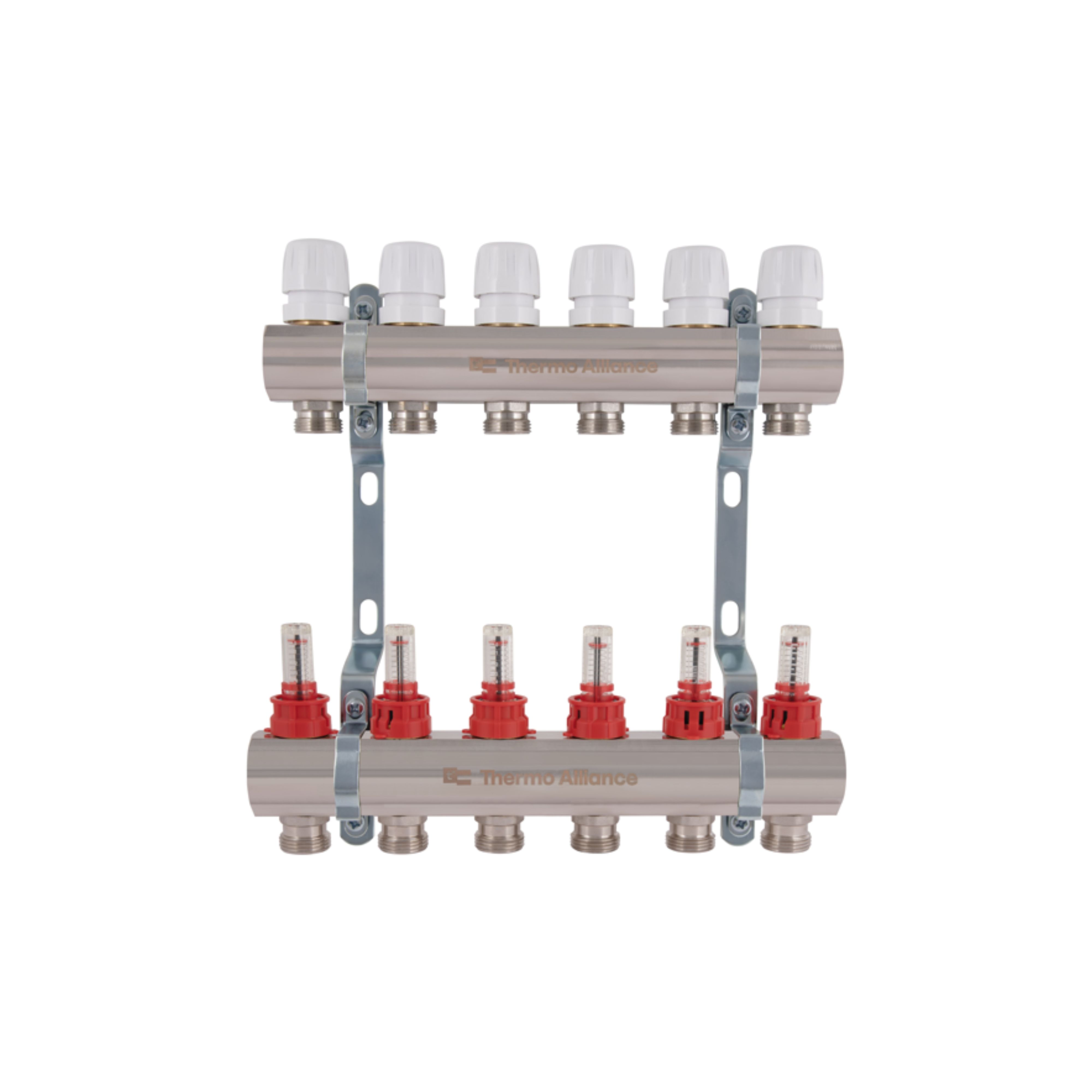 Колектор Standart з нерж. сталі, з термостатичн. клапанами і витратомірами 1" х 6 (вих) SD0046 Thermo Alliance