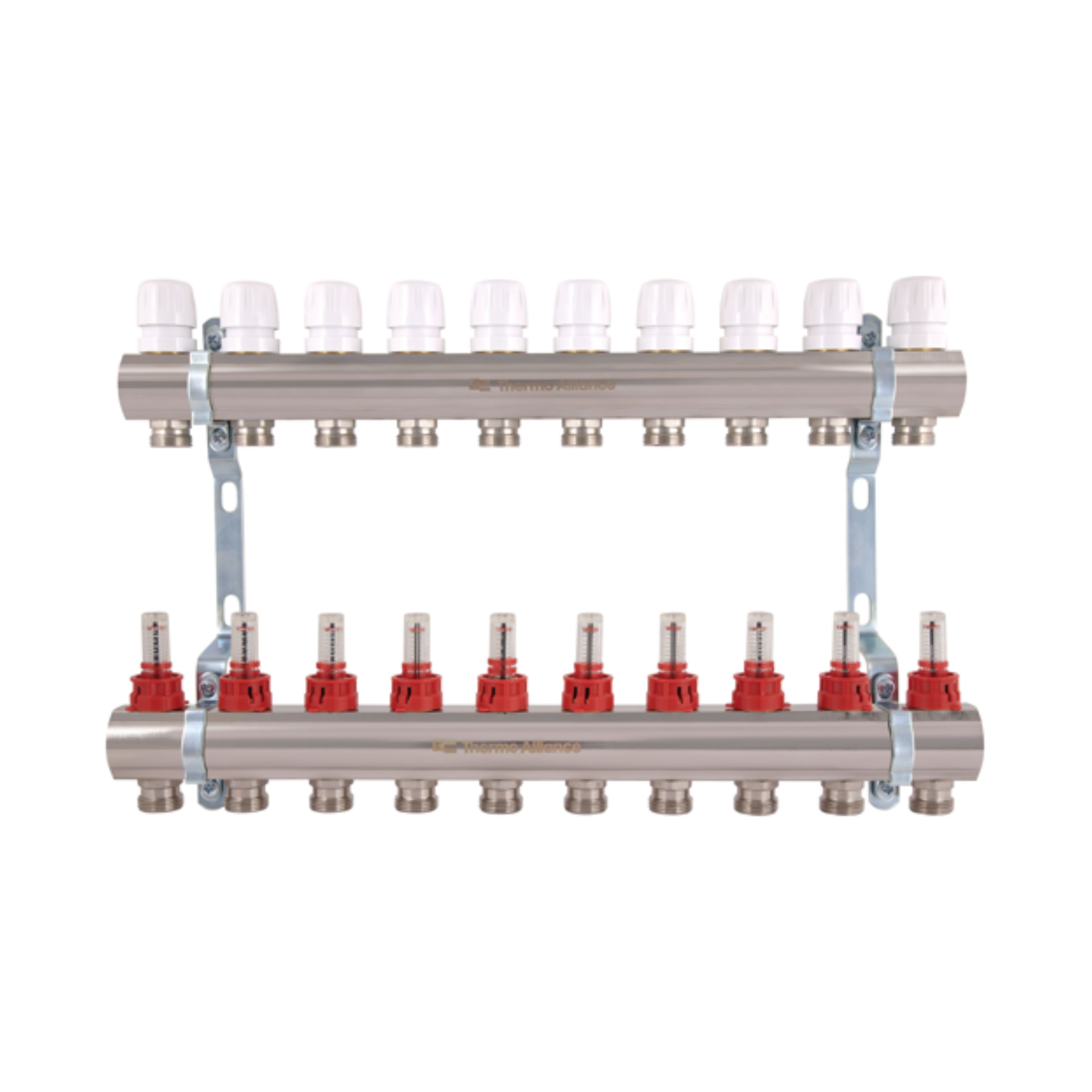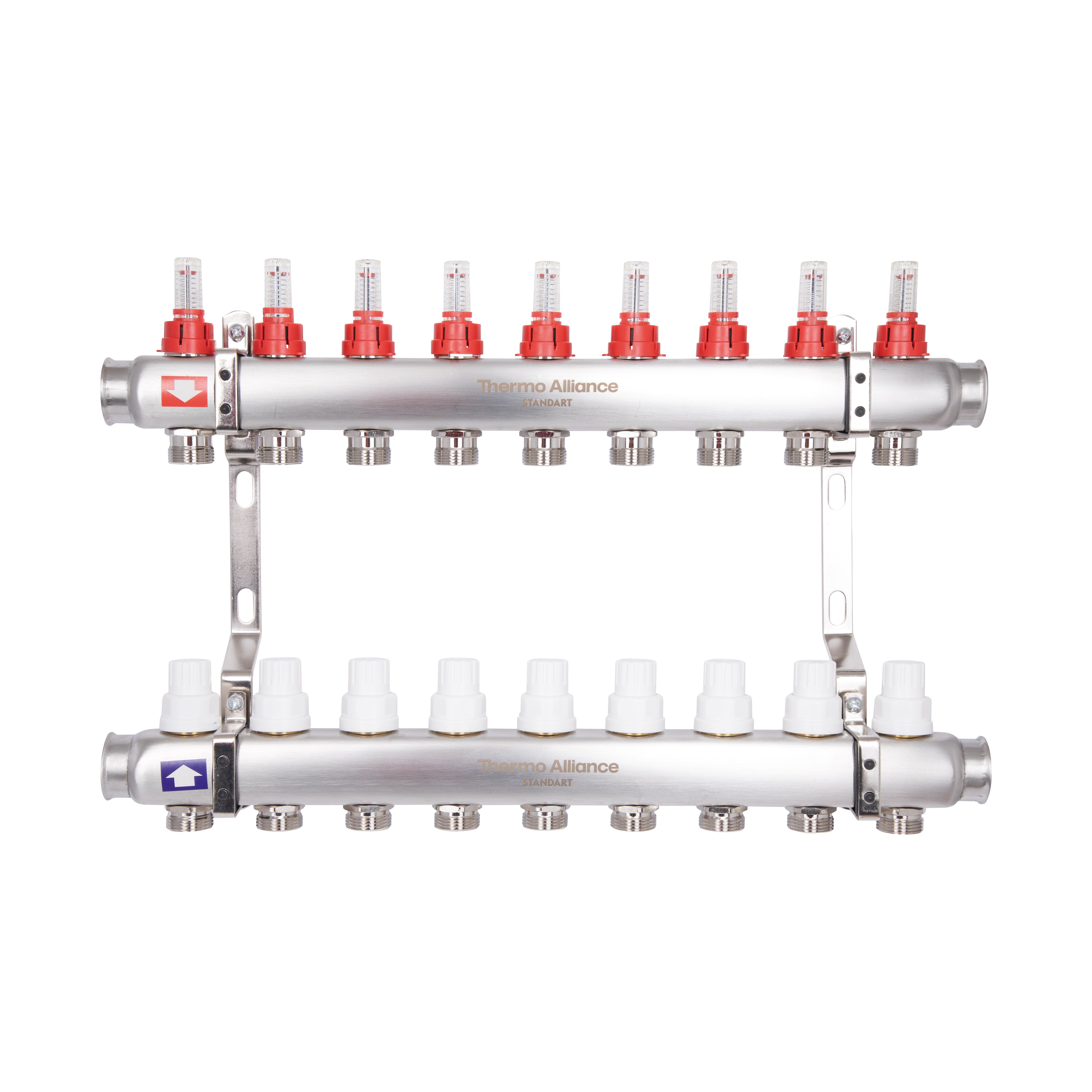 Колектор Standart з нерж. сталі, з термостатичн. клапанами і витратомірами 1" х 10 (вих) SD00410 Thermo Alliance