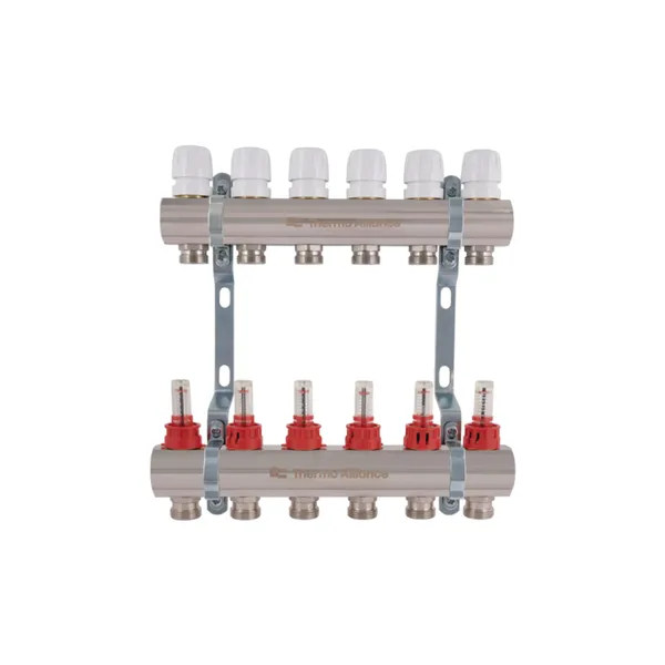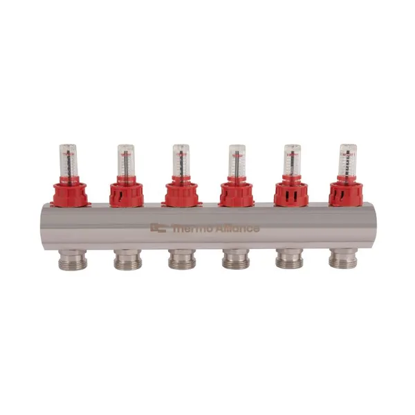 Колектор з витратомірами Thermo Alliance серії Standart 1”х6 SD235W6 використовується для розподілу води та контролю витрат у системах опалення та водопостачання. Забезпечує довговічність та надійність.