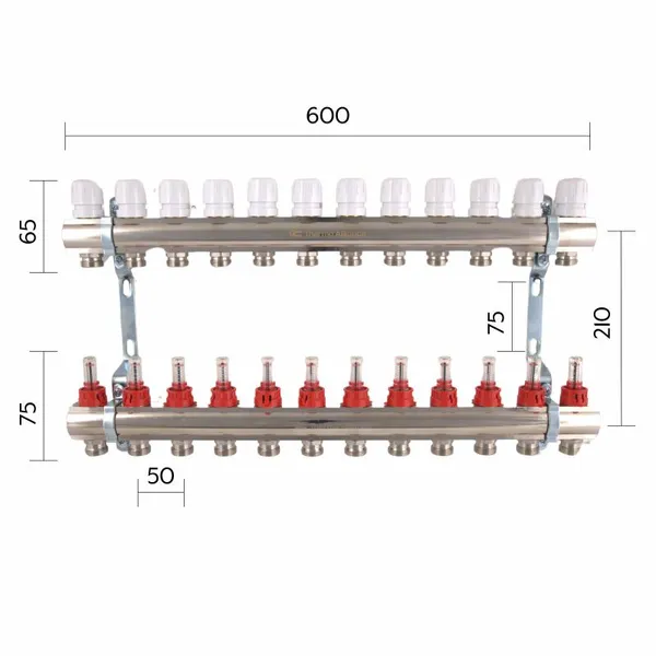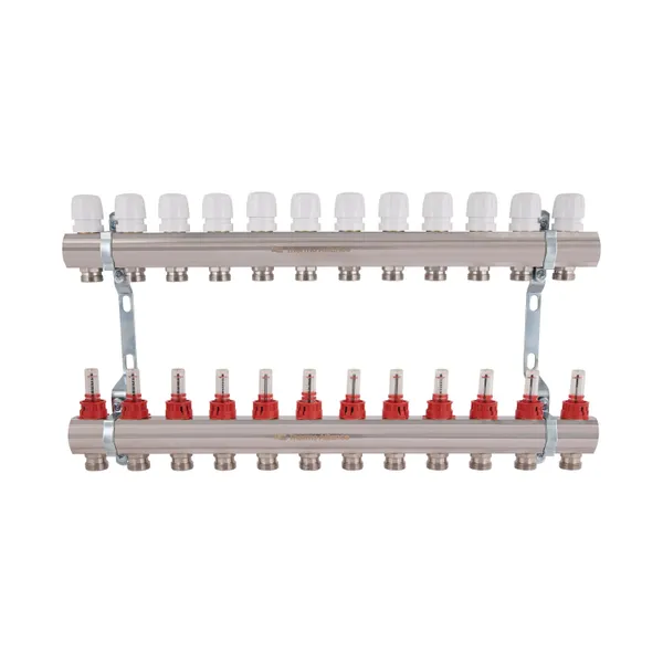 Колектор Standart з нерж. сталі, з термостатичн. клапанами і витратомірами 1" х 12 (вих) SD00412 Thermo Alliance