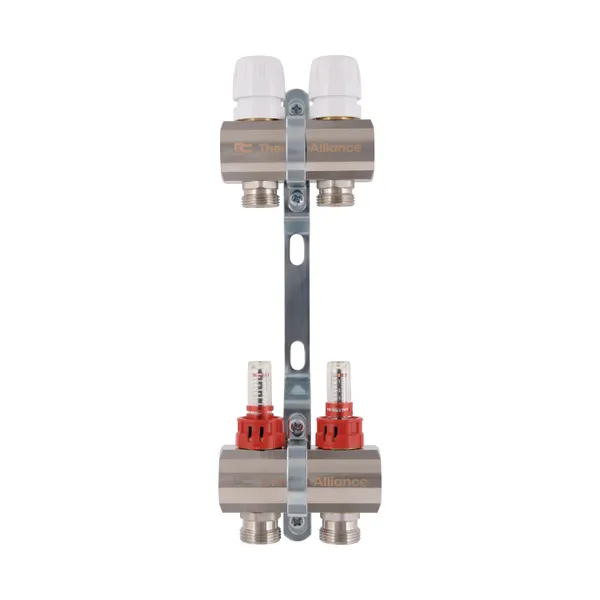 Колектор Standart з нерж. сталі, з термостатичн. клапанами і витратомірами 1" х 2 (вих) SD0042 Thermo Alliance
