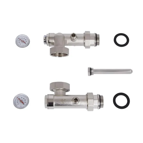 Конектор для колектора Thermo Alliance Standart 1" призначений для підключення циркуляційного насоса до колекторної групи. Виріб виконаний із латуні з нікельованим покриттям. Складається з двох магістральних балок із зануреними термометрами (шкала вимірювання 0–120 °C). Постачається разом із гільзою для щупа. Застосовується переважно при облаштуванні системи опалення «тепла підлога».