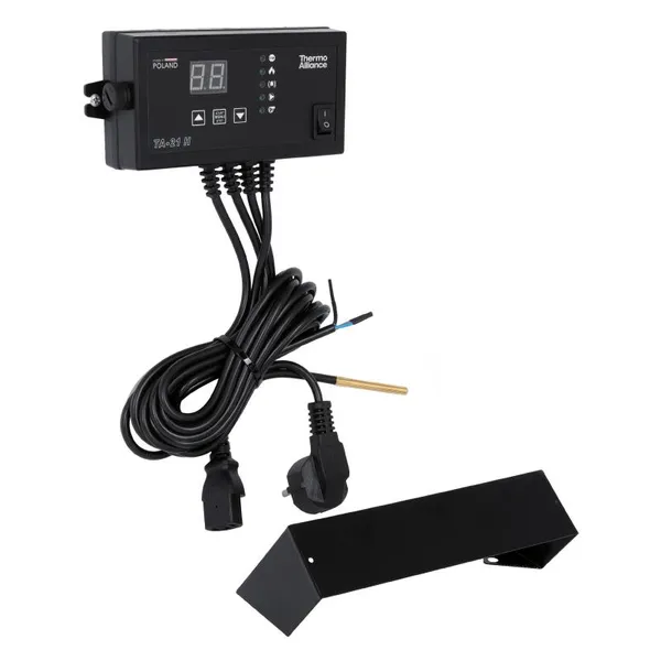 Контролер для котла TA21 Н Thermo Alliance призначений для автоматичного керування вентилятором і циркуляційним насосом системи опалення, забезпечуючи ефективну та безпечну роботу твердопаливного котла. Пристрій підтримує задану температуру води в системі, регулюючи оберти вентилятора, та вмикає насос центрального опалення при досягненні необхідної температури. Простий в налаштуванні та зручний у використанні, контролер допомагає знизити витрати палива та продовжити термін служби обладнання.