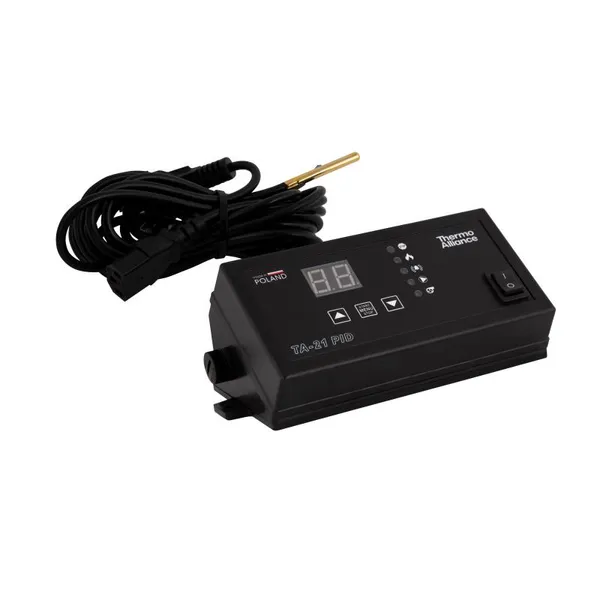 Контролер для котла TA21 PID Thermo Alliance забезпечує точне керування вентилятором та циркуляційним насосом системи опалення завдяки алгоритму PID-регулювання. Така система дозволяє підтримувати стабільну температуру теплоносія, оптимізуючи процес горіння та зменшуючи витрати палива. Контролер оснащений інформативним дисплеєм і зручним інтерфейсом для налаштування, що робить його ефективним рішенням для автоматизації роботи твердопаливного котла.