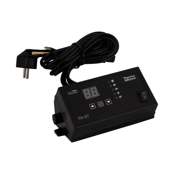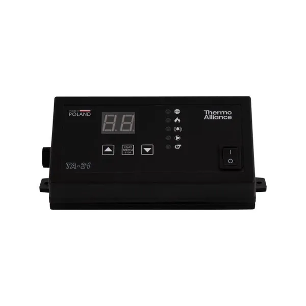 Контролер для котла TA21 Thermo Alliance призначений для автоматичного керування вентилятором і циркуляційним насосом системи опалення, забезпечуючи ефективну та безпечну роботу твердопаливного котла. Пристрій підтримує задану температуру води в системі, регулюючи оберти вентилятора, та вмикає насос центрального опалення при досягненні необхідної температури. Простий в налаштуванні та зручний у використанні, контролер допомагає знизити витрати палива та продовжити термін служби обладнання.