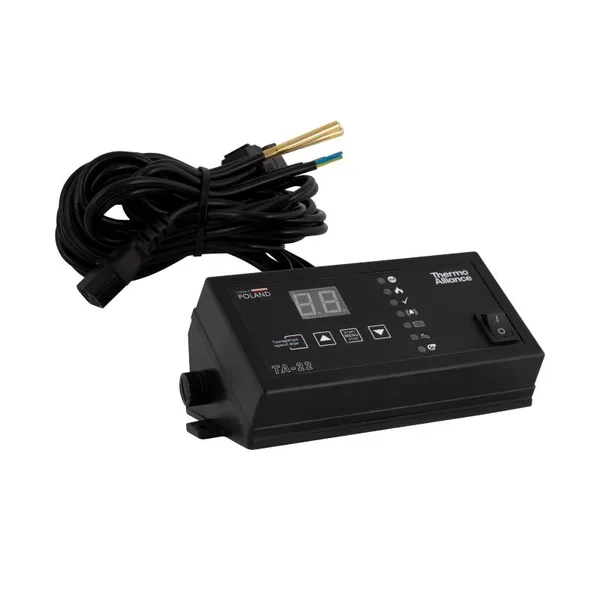 Контролер для котла TA22 Thermo Alliance призначений для комплексного керування вентилятором, циркуляційним насосом системи опалення та насосом гарячого водопостачання. Забезпечує ефективну роботу твердопаливного котла, підтримуючи стабільну температуру теплоносія та гарячої води. Оснащений зручним дисплеєм і зрозумілим інтерфейсом, TA22 дозволяє оптимізувати споживання палива й електроенергії, підвищуючи комфорт і безпеку експлуатації.