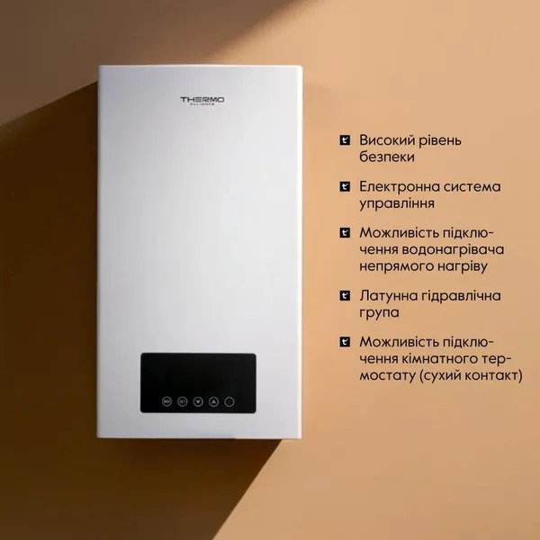 Настінний електричний котел Thermo Alliance 18 кВт призначений для нагріву теплоносія в закритих системах опалення при максимальному надлишковому тиску до 3,0 бар. Основною частиною котла є теплообмінник з нержавіючої сталі та алюмінієвого сплаву, з інтегрованими нагрівальними елементами. Котел обладнаний циркуляційним насосом, розширювальним баком, блоком управління і системою забезпечення безпечної експлуатації. Корпус котла оснащений надійною термоізоляцією. Є можливість підключення непрямого водонагрівача за допомогою комплекту Thermo Alliance AquaKit (замовляється окремо).