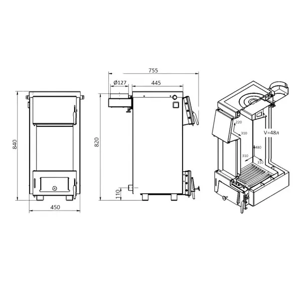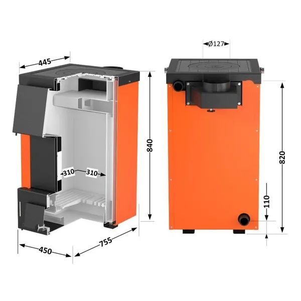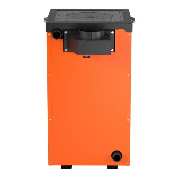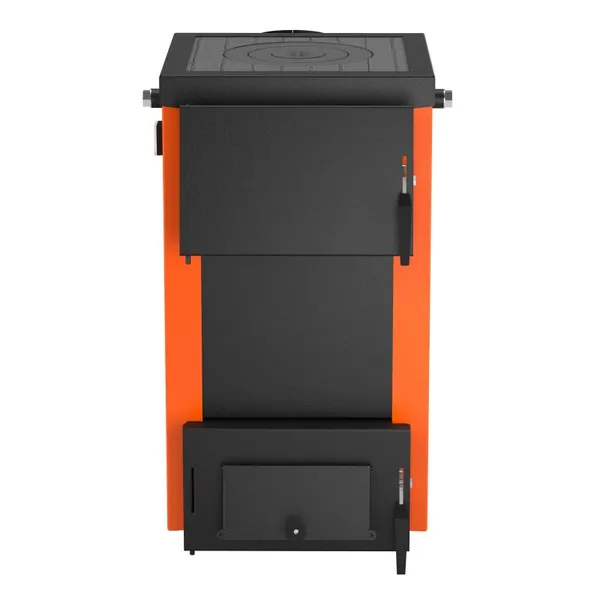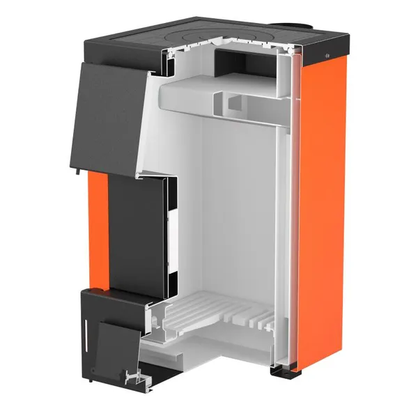 Твердопаливний котел Thermo Alliance Magnum SSF 12 з плитою розрахований на ручне завантаження палива: дров, кам'яного вугілля, деревних відходів, брикетів. Таке сталеве водогрійне пристрій обладнано варильною поверхнею з чавуну з однією конфоркою, тому забезпечить не тільки обігрів приміщень, але й надасть можливість приготувати їжу. Дверцята з універсальною стороною відкривання, їх можна перевісити на праву або ліву сторону. Теплоізоляцію забезпечує шар мінеральної вати.