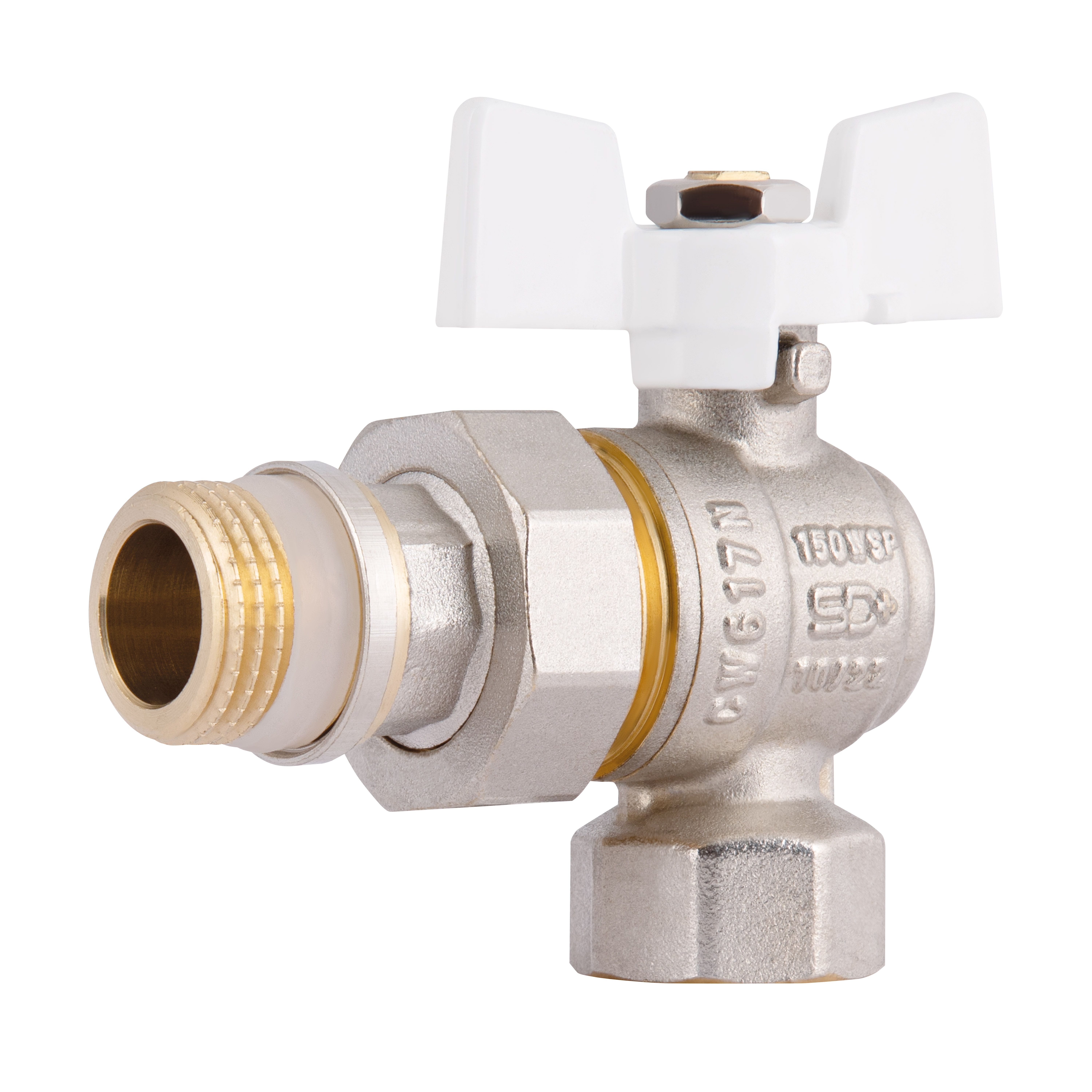 Кран кульовий Forte 3/4"ВЗ кутовий, з американкою, нікел., антипротікання, метелик SF223W20 Thermo Alliance