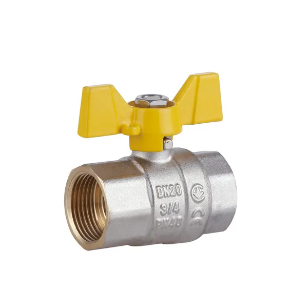 Кран кульовий для газу Base 3/4"ВЗ прямий, латун. нікел., PN40, метелик SD607G20 Thermo Alliance