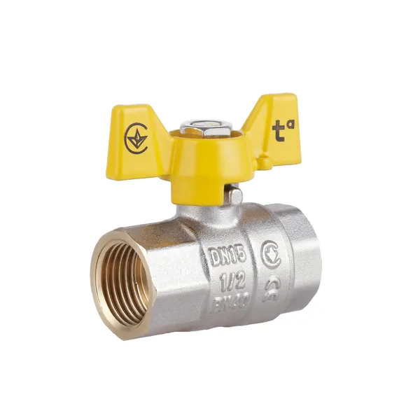 Кран кульовий для газу Standart 1/2"ВВ прямий, латун. нікел., PN40, метелик SD602NG15PN40 Thermo Alliance