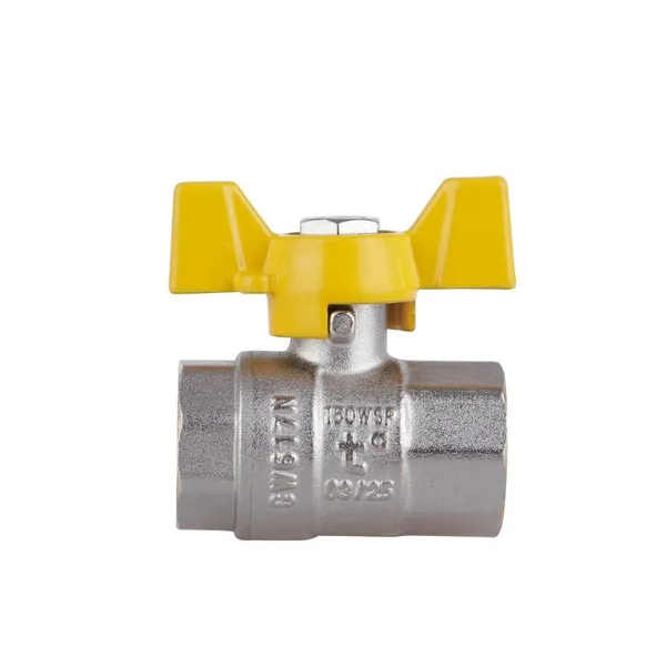 Кран кульовий для газу Base 3/4"ВЗ прямий, латун. нікел., PN40, метелик SD607G20 Thermo Alliance
