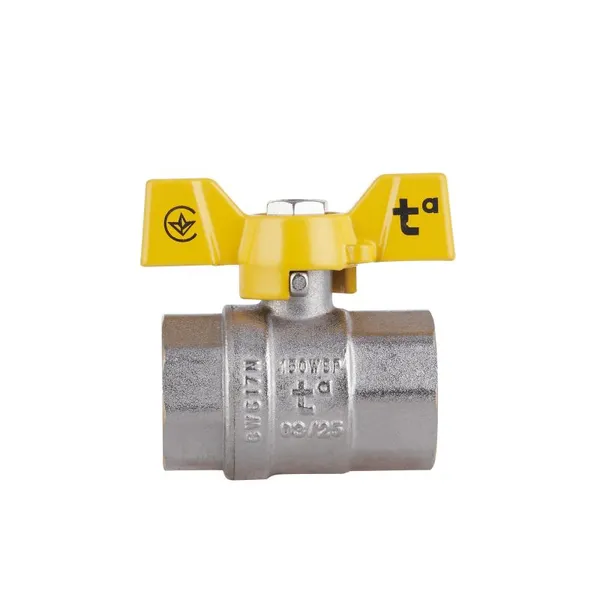 Кран кульовий для газу Base 3/4"ВЗ прямий, латун. нікел., PN40, метелик SD607G20 Thermo Alliance