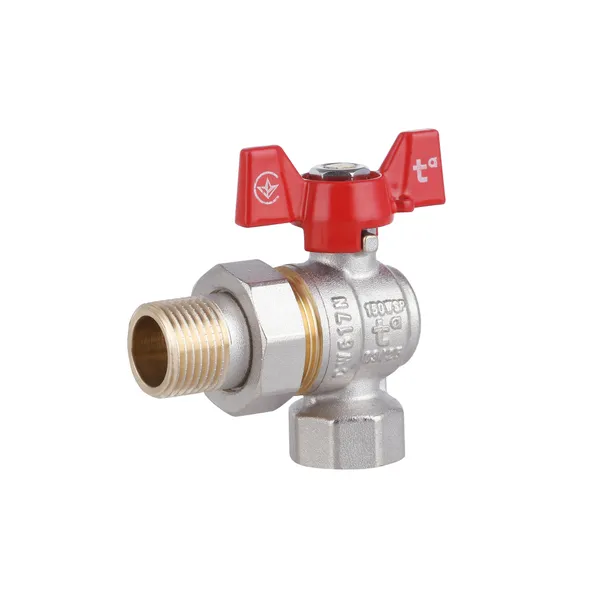Кран кульовий Standart 1/2"ВЗ кутовий, з американкою, латун., нікельов., конус, PN40, метелик SD222NW15PN40 Thermo Alliance