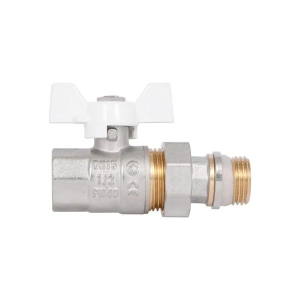 Кран кульовий Standart 1/2"ВЗ прямий, з американкою, латун,. нікельов., конус, PN40, метелик SD220NW15PN40 Thermo Alliance
