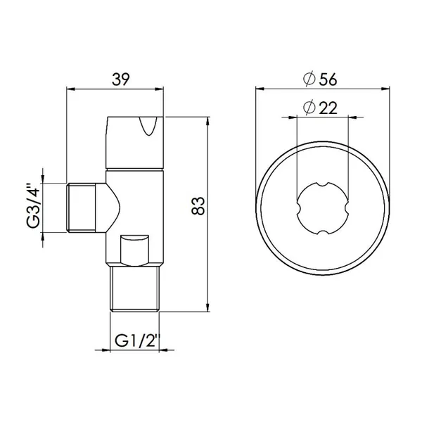 Кран кутовий Standart 1/2"З×3/4"З, хром, керамічна букса, ручка кругла, для приладів F342W1520 Thermo Alliance