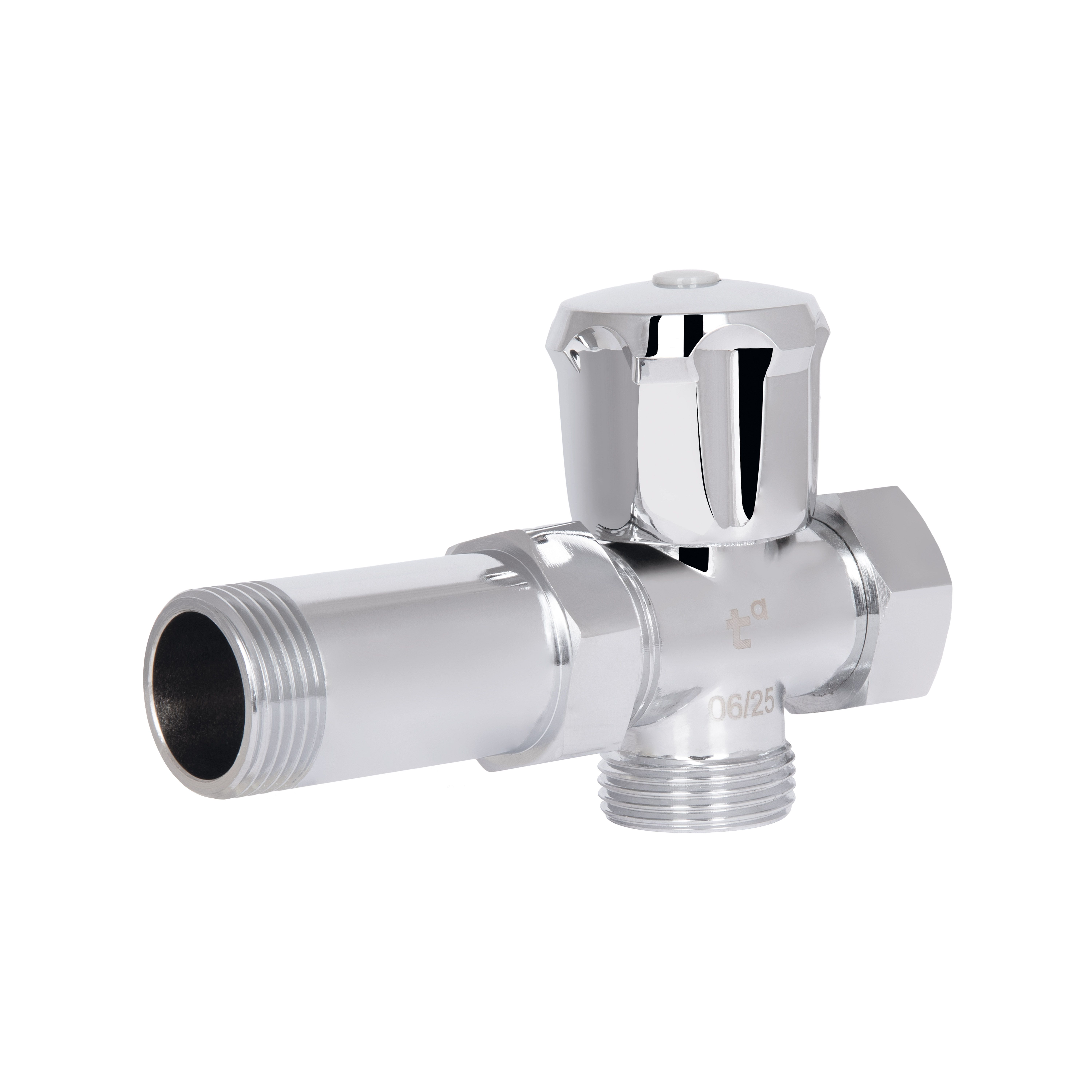 Кран кутовий Standart 1/2"З×3/4"З, хром, керамічна букса, ручка кругла, для приладів F342W1520 Thermo Alliance
