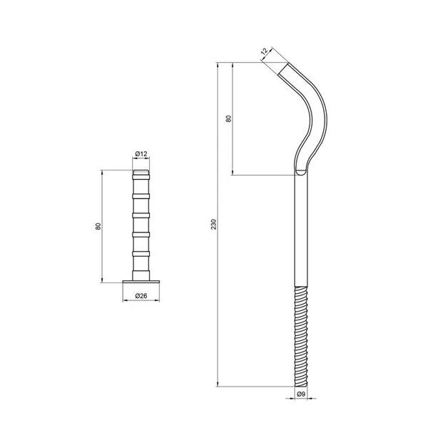 Діметр кронштейна – 9 мм, довжина – 230 мм. Комплектація: кріплення - 2 шт.