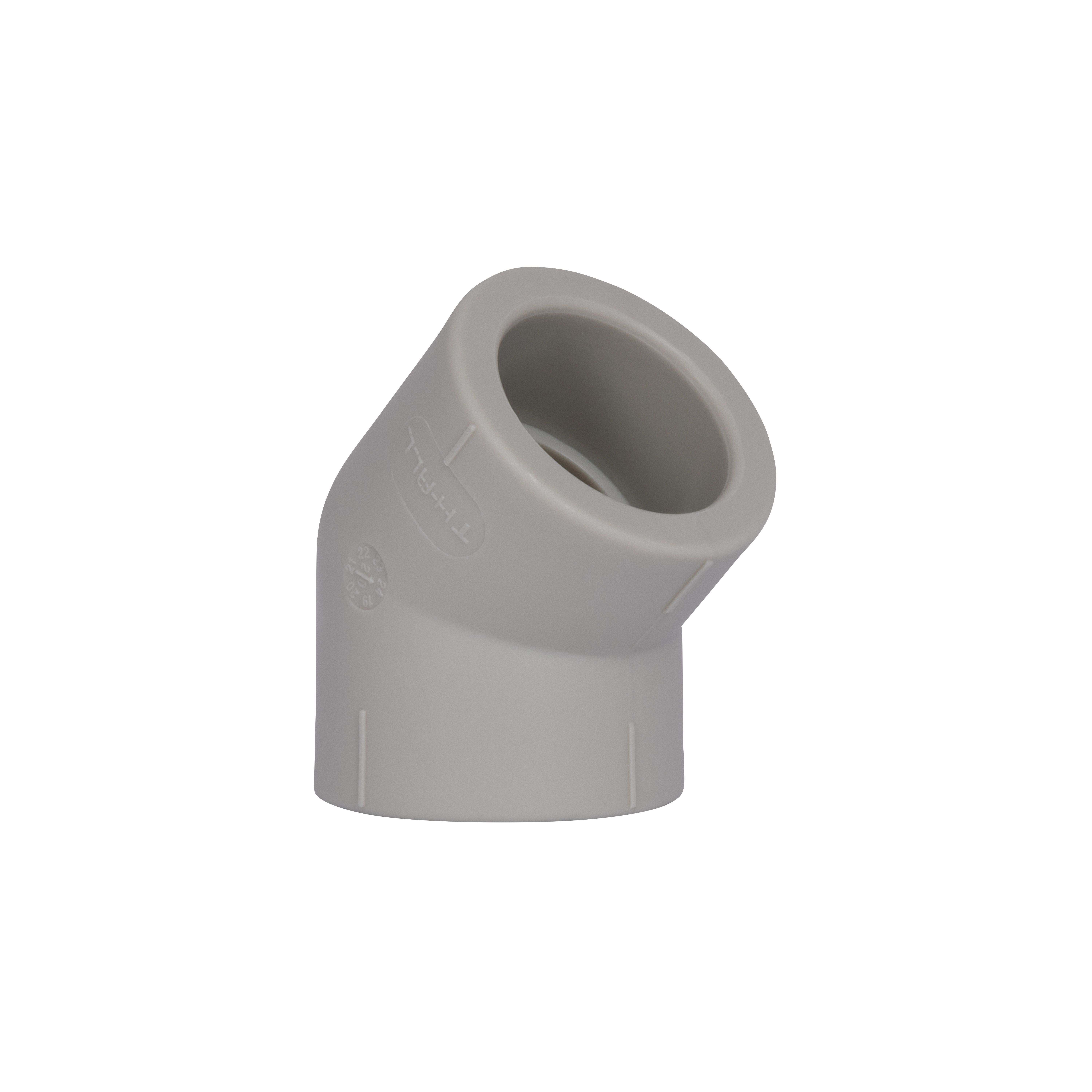 Кутик PPR Thermo Alliance 110, 45° зроблений повністю із поліпропілену, його корпус повернутий під кутом 45 градусів. Фітинг призначений для з'єднання двох труб з зовнішнім діаметром 110 мм в одну систему зі зміною напрямку трубопроводу. Для з'єднання фасонної деталі з відрізком труби застосовують поліфузне зварювання. Під час нагрівання кутик не налипає на інструмент завдяки якості матеріалу виготовлення. Правила експлуатації задають температуру робочого середовища: максимум 90 °C.