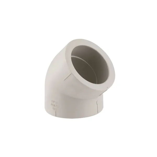 Для виконання повороту поліпропіленового трубопроводу під кутом 45 градусів застосовують кутик PPR Thermo Alliance 75, 45°. Виріб рівнопрохідний, з внутрішнім діаметром 75 мм. Для з'єднання з відрізком труби необхідний апарат для поліфузної пайки. Завдяки якості матеріалу виготовлення під час зварювання кінці фітинга прогріваються рівномірно, без налипання до насадок паяльника. Фасонна деталь розрахована на температуру робочого середовища під час експлуатації до 90 °C.