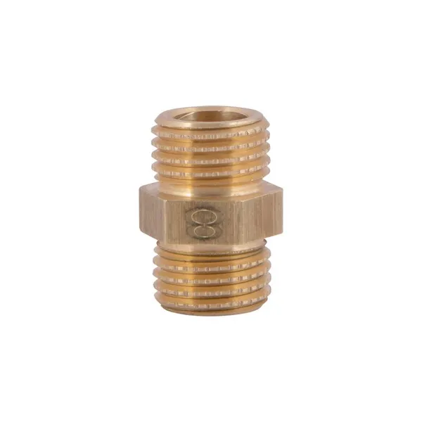 Ніпель Thermo Alliance Standart 1/4" НР SD40766 — це прямий з'єднувальний фітинг, оснащений з обох боків зовнішньою різьбою розміром 1/4". Сфера використання — системи опалення, водопостачання, кондиціювання тощо. Таке роз'ємне з'єднання застосовують під час монтажу трубопроводів. Матеріал виготовлення (деталь зроблена з латуні) міцний, стійкий до корозії.