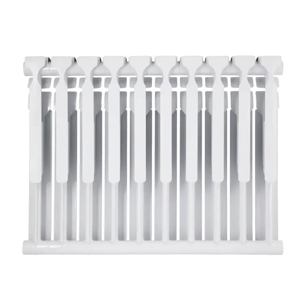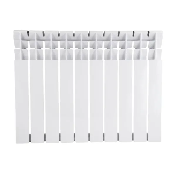Радіатор біметалевий Thermo Alliance серії Bi-Ferrum 500×80 мм (10 секцій) — секційний радіатор з боковим підключенням (арт. F500800B), розрахований на тиск до 30 бар і температуру до 110 °C. Вага однієї секції — 1,16 кг, теплова потужність — 165 Вт. Загальна потужність — 1650 Вт. Міжосьова відстань — 500 мм. Радіатор виготовлений із біметалу, товщина сталевої трубки — 2 мм. Підходить для автономних і централізованих систем опалення.