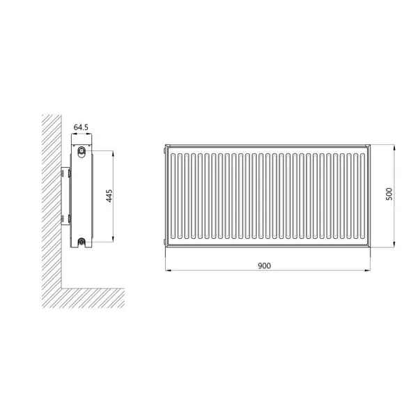 Радіатор сталевий Thermo Alliance 11 тип 500×900 мм з боковим підключенням (арт. TA11500900K) — панельний радіатор для настінного монтажу в автономних системах опалення. Виготовлений зі сталі товщиною 1,2 мм, витримує тиск до 10 бар і температуру до 95 °C. Має високу тепловіддачу — 876 Вт. У комплекті — кран Маєвського, заглушка та набір кронштейнів для настінного кріплення.