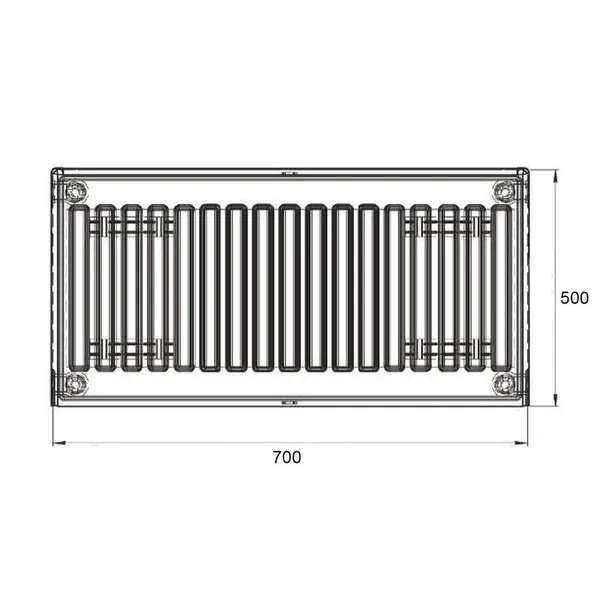 Радіатор сталевий Thermo Alliance 22 тип 500×700 мм з боковим підключенням (арт. TA22500700K) — панельний радіатор з двома панелями та двома конвекторами, призначений для настінного монтажу в автономних системах опалення. Тепловіддача — 1306 Вт. Радіатор витримує температуру до 95 °C і тиск до 10 бар. Товщина сталі — 1,2 мм. У комплекті — кран Маєвського, заглушка та набір кронштейнів для настінного кріплення.