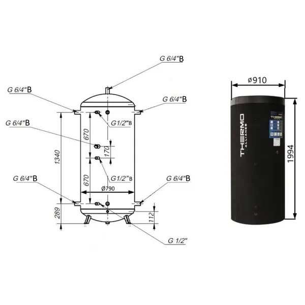 Теплоакумулятор Thermo Alliance TA-ТАМ-00 1000 (60 мм) виконує важливу функцію накопичення, збереження та передачі теплової енергії. Пристрій дозволяє безпечно, оптимально використовувати в одній інженерній мережі тепло, що надходить від різних джерел непостійної дії: від котлів на твердому паливі, геліоколекторів, теплових насосів та ін. Максимальний робочий тиск рідкого носія - 0,3 МПа. Система, до складу якої входить буферний бак, може бути як закритою, так і відкрито
