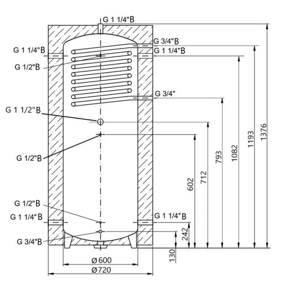 Теплоакумулятор Thermo Alliance TAI-10 350 - це пристрій, призначений для накопичення, збереження та передачі теплоносія від джерел непостійної дії: котли, теплові насоси, геліоколектори та інші. Буферний бак обладнаний верхнім витим теплообмінником з нержавіючої сталі. Основне завдання вбудованого змійовика – нагрівання води для побутових потреб. Теплоакумулятор оптимізує роботу опалювальної системи за рахунок компенсації невідповідності між виробництвом та витратою тепла.