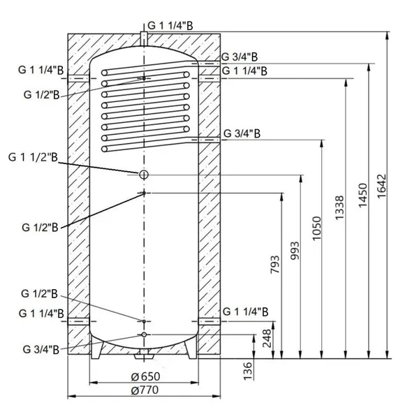 Функція теплоакумулятора Thermo Alliance TAI-10 500 - накопичення, збереження, передача теплоносія від джерел непостійної дії (котли, теплонасоси, геліоколектори та ін), що працюють в одній системі. Буферний бак має верхній витий теплообмінник, виготовлений з нержавіючої сталі. Змійовик нагріває воду для побутових потреб, у традиційній мережі з газовим котлом виконує роль бойлера гарячого водопостачання. Теплоізоляція товщиною 6 см зроблена з пінополіуретану/пінополістиролу.