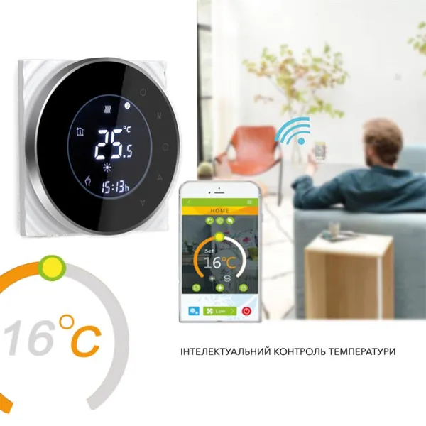 Провідний тижневий термостат із Wi-Fi BHT-6000-GALW - це сучасний високотехнологічний пристрій для керування опаленням у вашому будинку. Завдяки підтримці WiFi і можливості тижневого програмування термостат забезпечує зручність, точний контроль температури та високу енергоефективність. Керування доступне через мобільний застосунок Tuya Smart / Smart Life (доступний для Android та iOS).