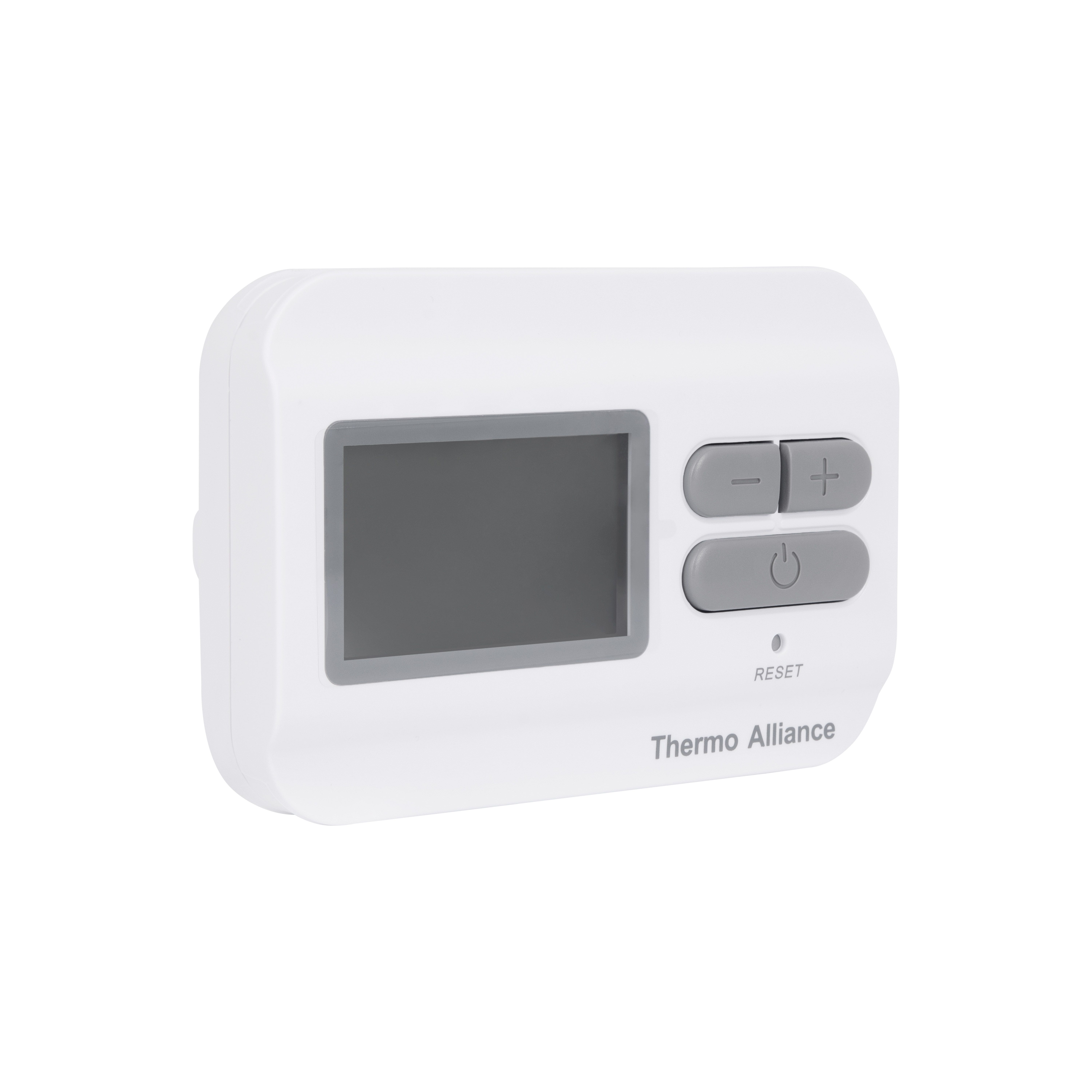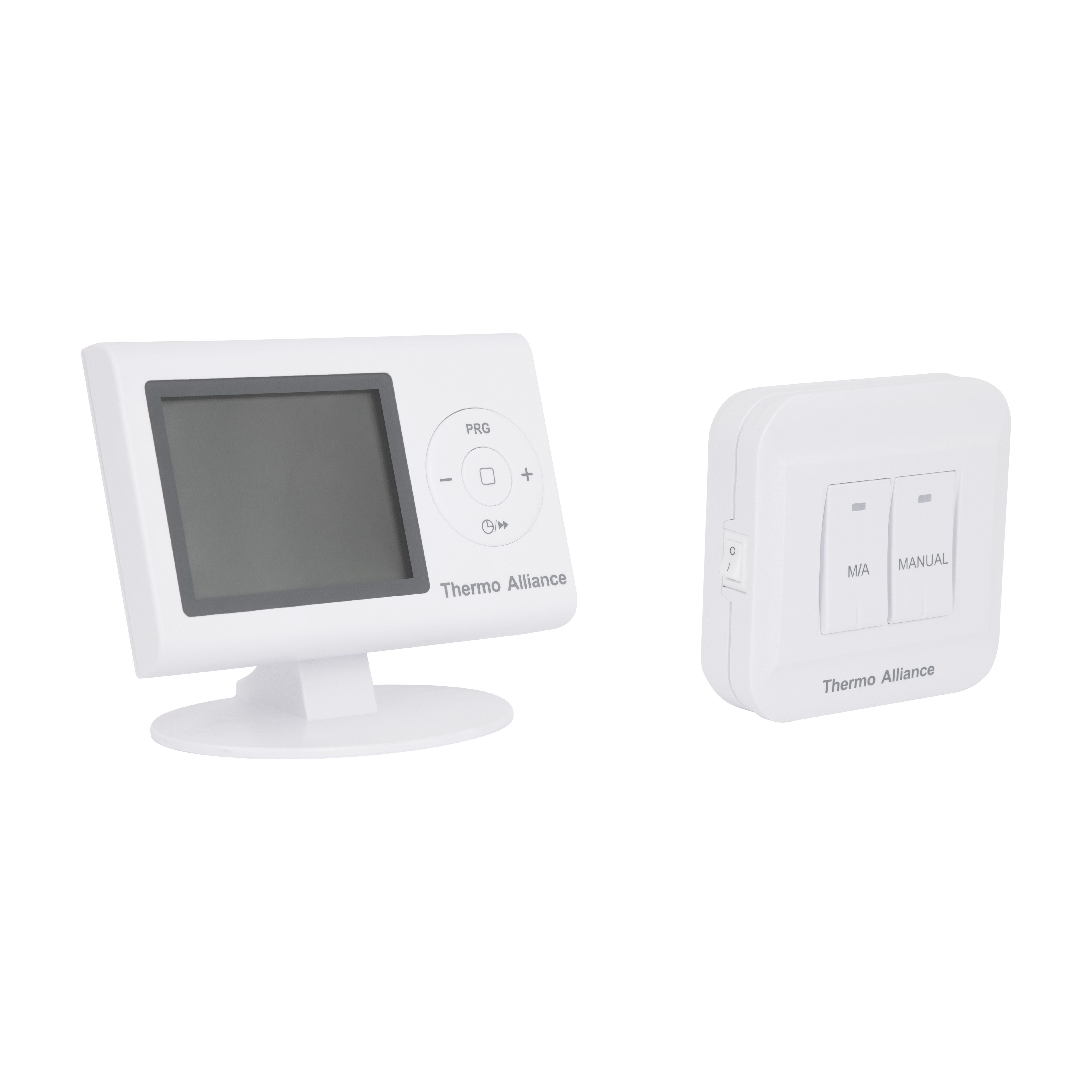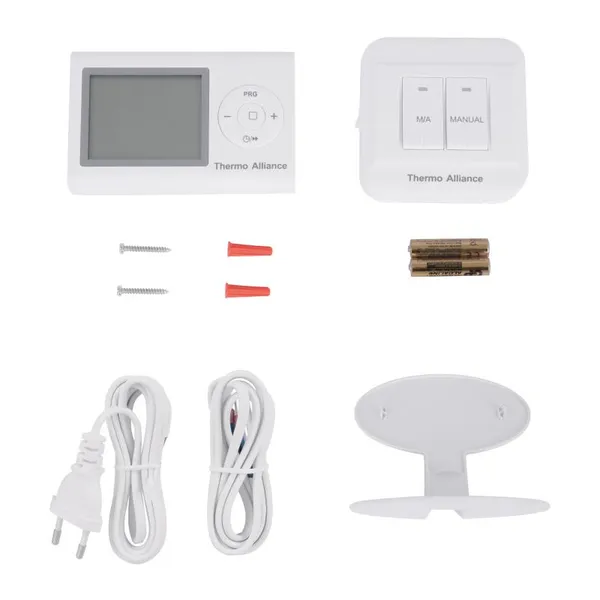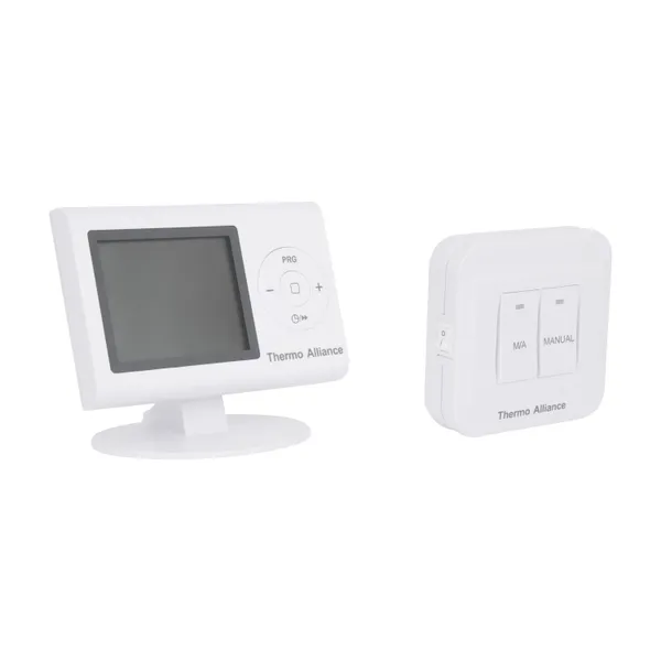 Тижневий програмований термостат Thermo Alliance ТА-2402RF має два блоки: блок управління опалювальним приладом (увімкнення/вимкнення) та блок кімнатного термостата, він використовується як графічний інтерфейс користувача для визначення та контролю температури в приміщенні. Обидва блоки підтримують зв'язок радіочастотами (RF).