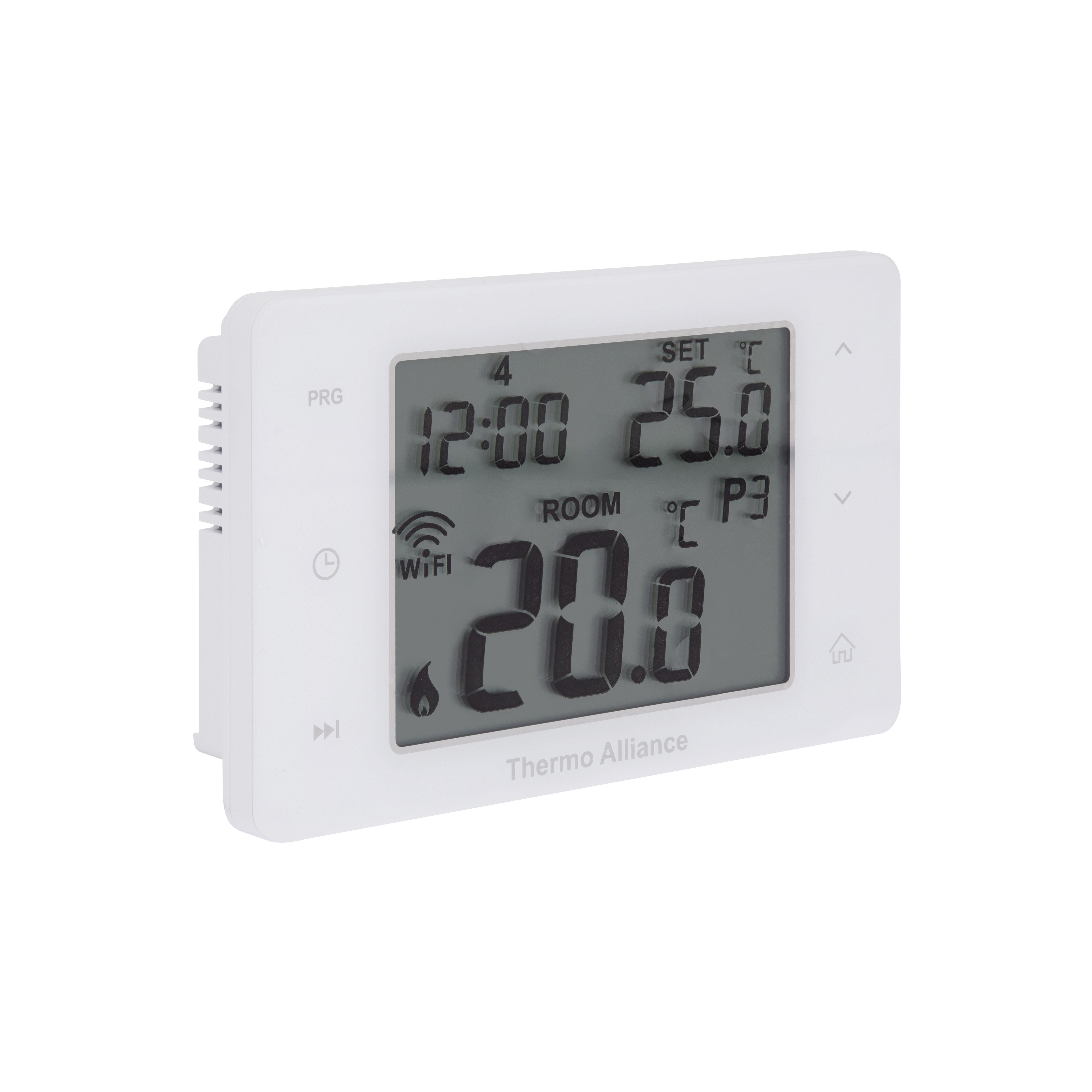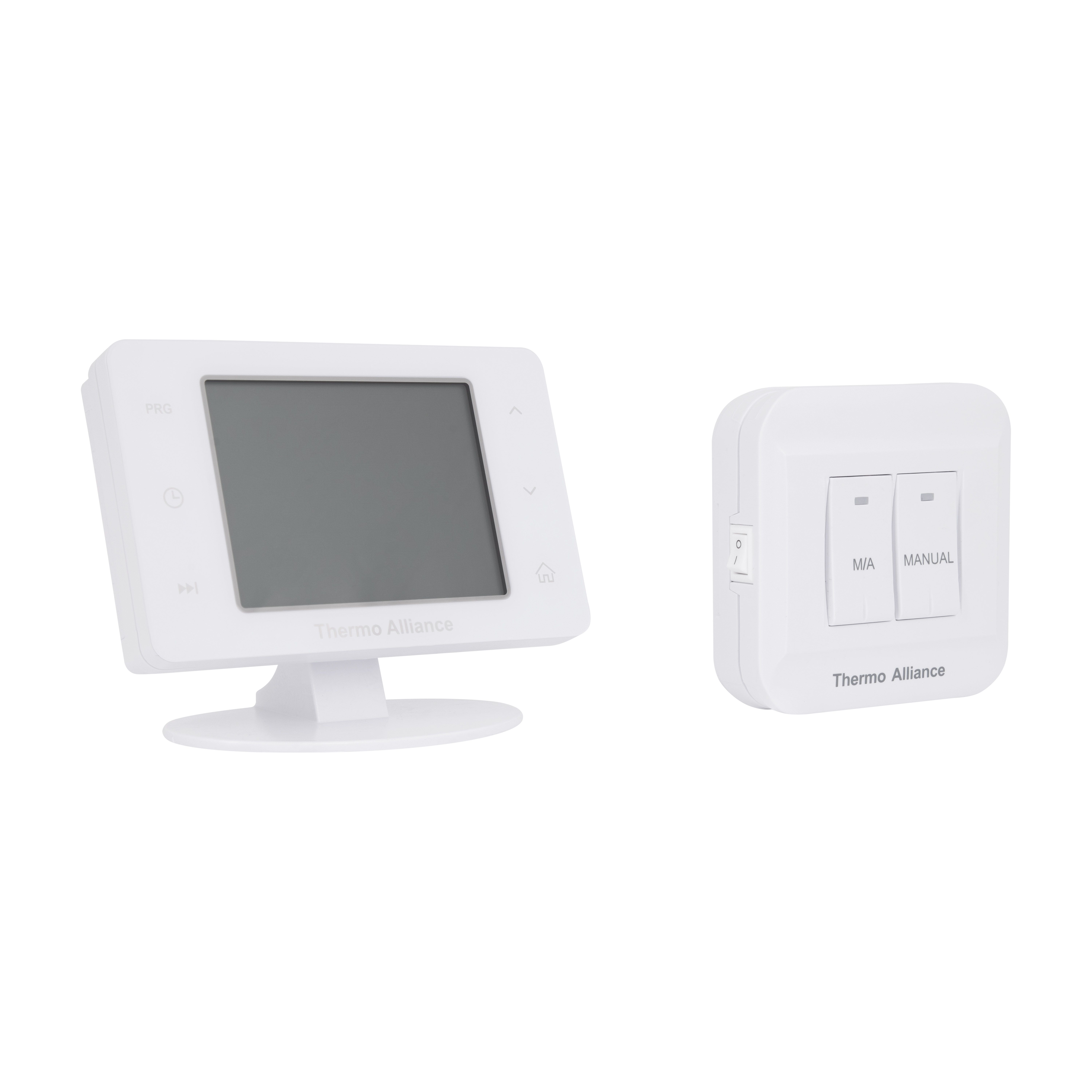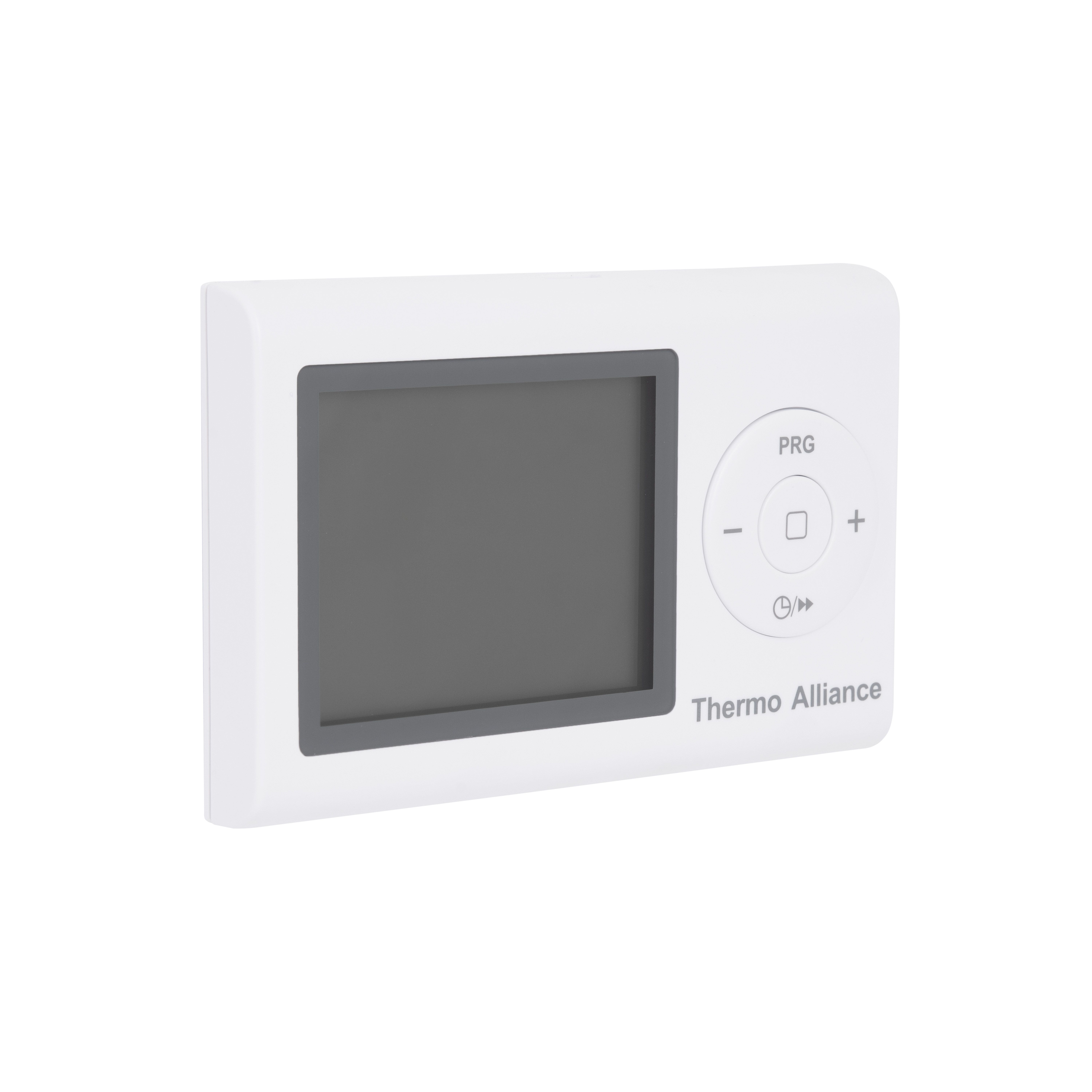 Тижневий програмований термостат Thermo Alliance ТА-2402RF має два блоки: блок управління опалювальним приладом (увімкнення/вимкнення) та блок кімнатного термостата, він використовується як графічний інтерфейс користувача для визначення та контролю температури в приміщенні. Обидва блоки підтримують зв'язок радіочастотами (RF).