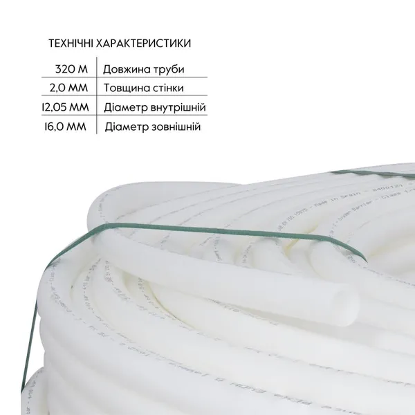Труба PEX-A EVOH WHITE діаметром 16x2 від Thermo Alliance, вироблена в Іспанії, є високоякісною трубопровідною системою з антикисневим бар'єром EVOH, яка запобігає корозії і збільшує термін служби системи опалення. Виготовлена за технологією PEX-A, труба має високу гнучкість, міцність і стійкість до високих температур, що робить її ідеальною для монтажу в системах теплої підлоги. Довжина 320 метрів забезпечує зручність та економічність при встановленні на великих площах.