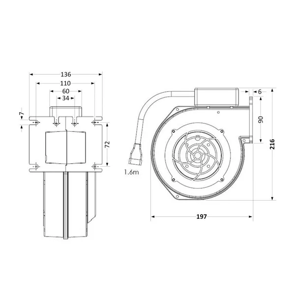 Вентилятор "M Plus M" Х145 для твердопаливного котла 100 кВт, 156 Вт, 500 м. куб. MPLUSMX145