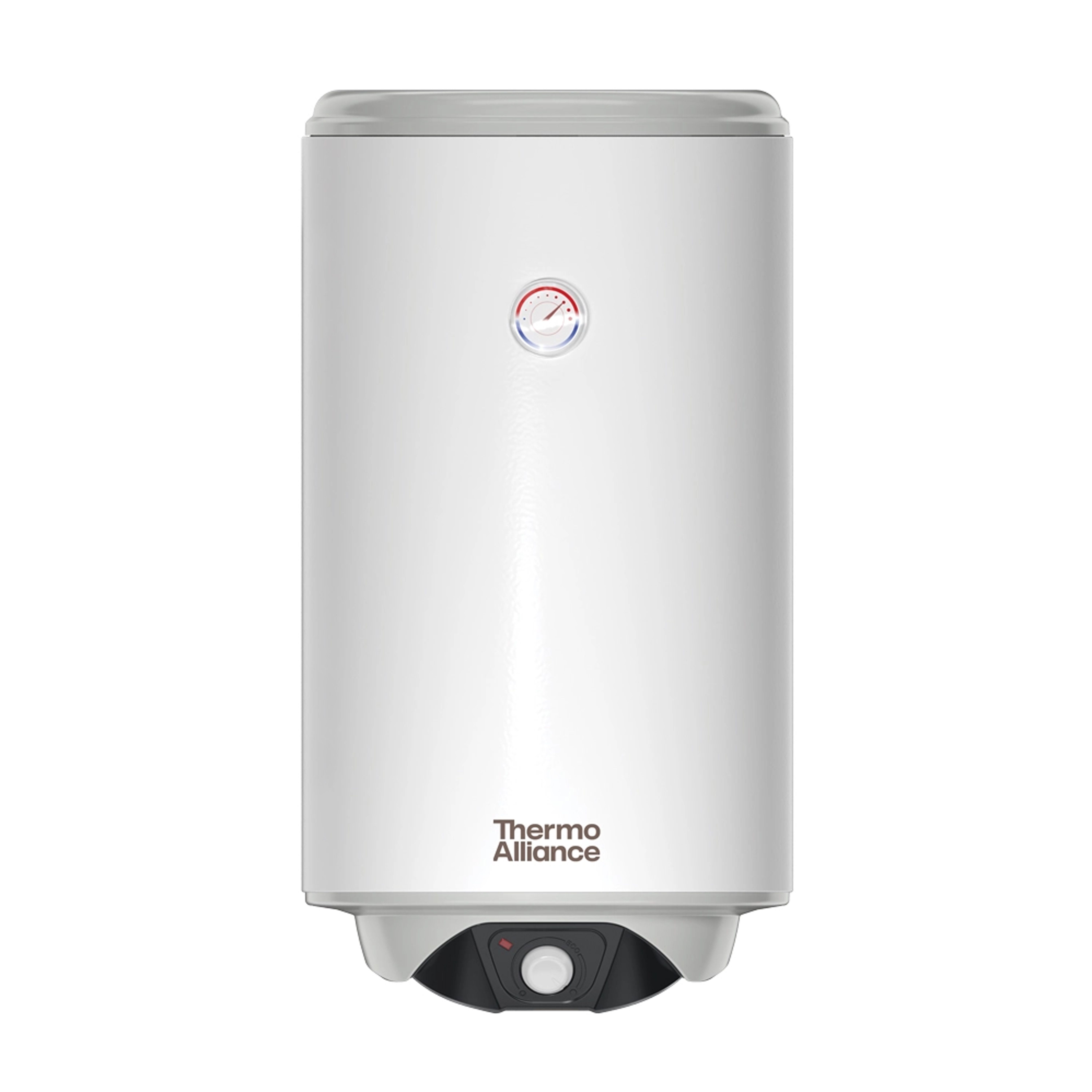 Такий пристрій для підігріву води можна розмістити в вертикальної ніші або в кухонній шафі. Захищають від корозії водонагрівач Thermo Alliance 100 л, сухий ТЕН 2 кВт (0,8+1,2) DT100V20GPDD/2 два магнієвих аноди та внутрішнє емалеве покриття бака. Нагрівальні елементи працюють надійно. На панелі управління знаходиться дисплей, поворотні ручки регулятора температури й перемикача ТЕНів. Патрубки 1/2" підключення до труб розташовані внизу. Товщина внутрішнього бака - 2 мм.