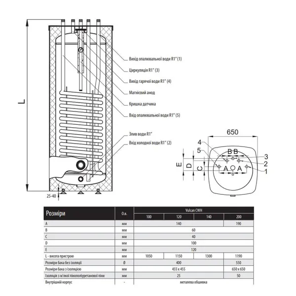 Thermo Alliance Vulcan CWH 12046 14S F – це водонагрівач монтажу непрямого нагріву в стильному прямокутному дизайні Square Jacket Design. Всі підключення розташовані у верхній кришці водонагрівача, що дозволяє компактно розмістити водонагрівач під опалювальним котлом із мінімальною кількістю гідравлічних з'єднань. Джерелом тепла в теплообміннику Thermo Alliance Vulcan є спіральний змійовик, який живиться від центрального опалення котла або каміна. За бажанням водонагрівач також може працювати від електронагрівача (опція ТЕН 1 1/2"). Конструкція водонагрівача також має на увазі циркуляційний контур ГВП, що дозволяє підключати зовнішній циркуляційний насос.