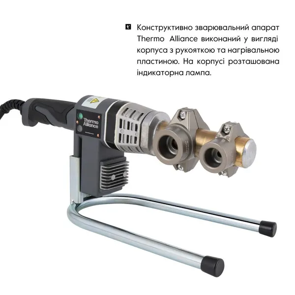Thermo Alliance STD-102 Паяльник стрижневий для PPR Ø20-32 (автоматичний), 700W оснащений стрижневою конструкцією, що робить його особливо зручним для роботи у важкодоступних місцях. Потужність 700 Вт забезпечує швидке та стабільне нагрівання, а автоматичне керування гарантує точність паяння труб діаметром від 20 до 32 мм. Цей паяльник ідеально підходить для професійного використання на об'єктах водопостачання та опалення.