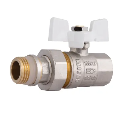 Кран кульовий Base 3/4"ВЗ прямий, з американкою, латун., нікельов., PN40, метелик SD221W20 Thermo Alliance