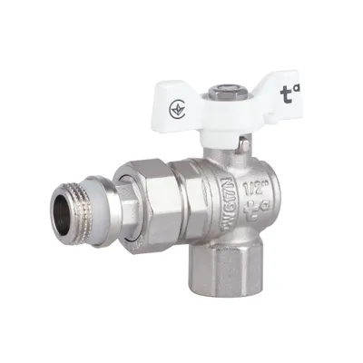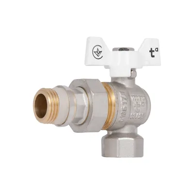 Кран кульовий Standart 1/2"ВЗ кутовий, з американкою, латун., нікельов., конус, PN40, метелик SD222NW15PN40 Thermo Alliance
